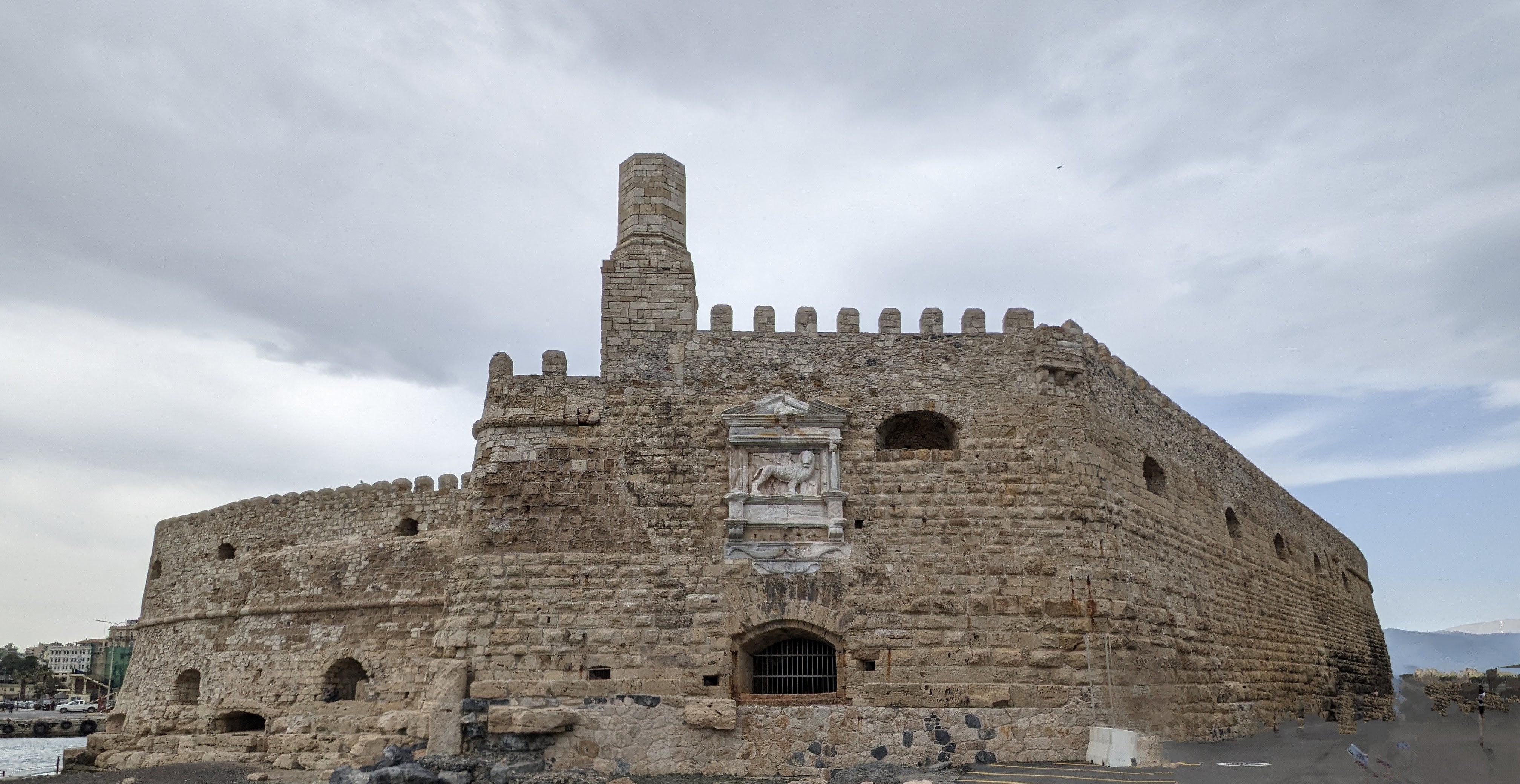 The Venetian harbor in Heraklion has a great, brooding fortress along the seawall to protect the entrance. This is Rocca a Mare fortress, built in the 16th century.