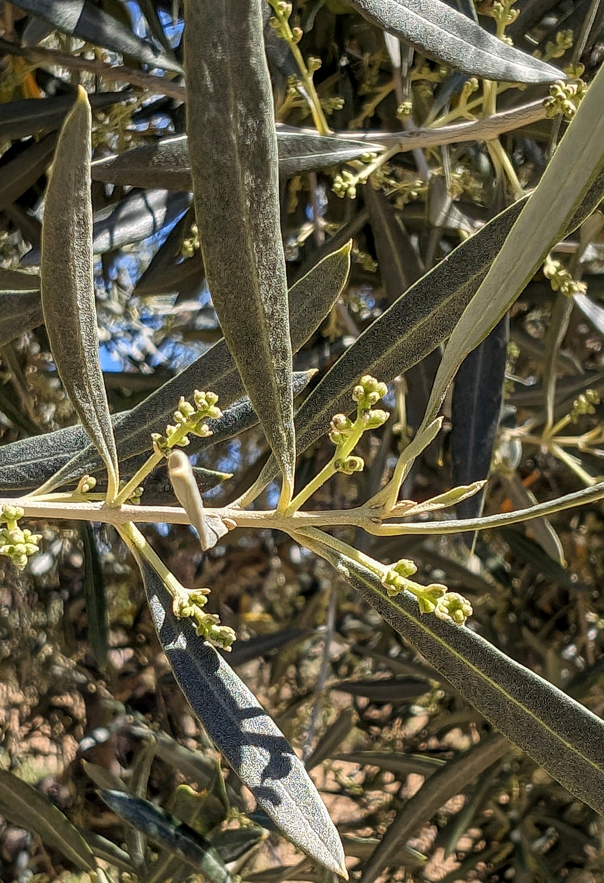 These are the buds on an olive tree. Almost impossibly tiny, each could be hidden behind the head of a pin.