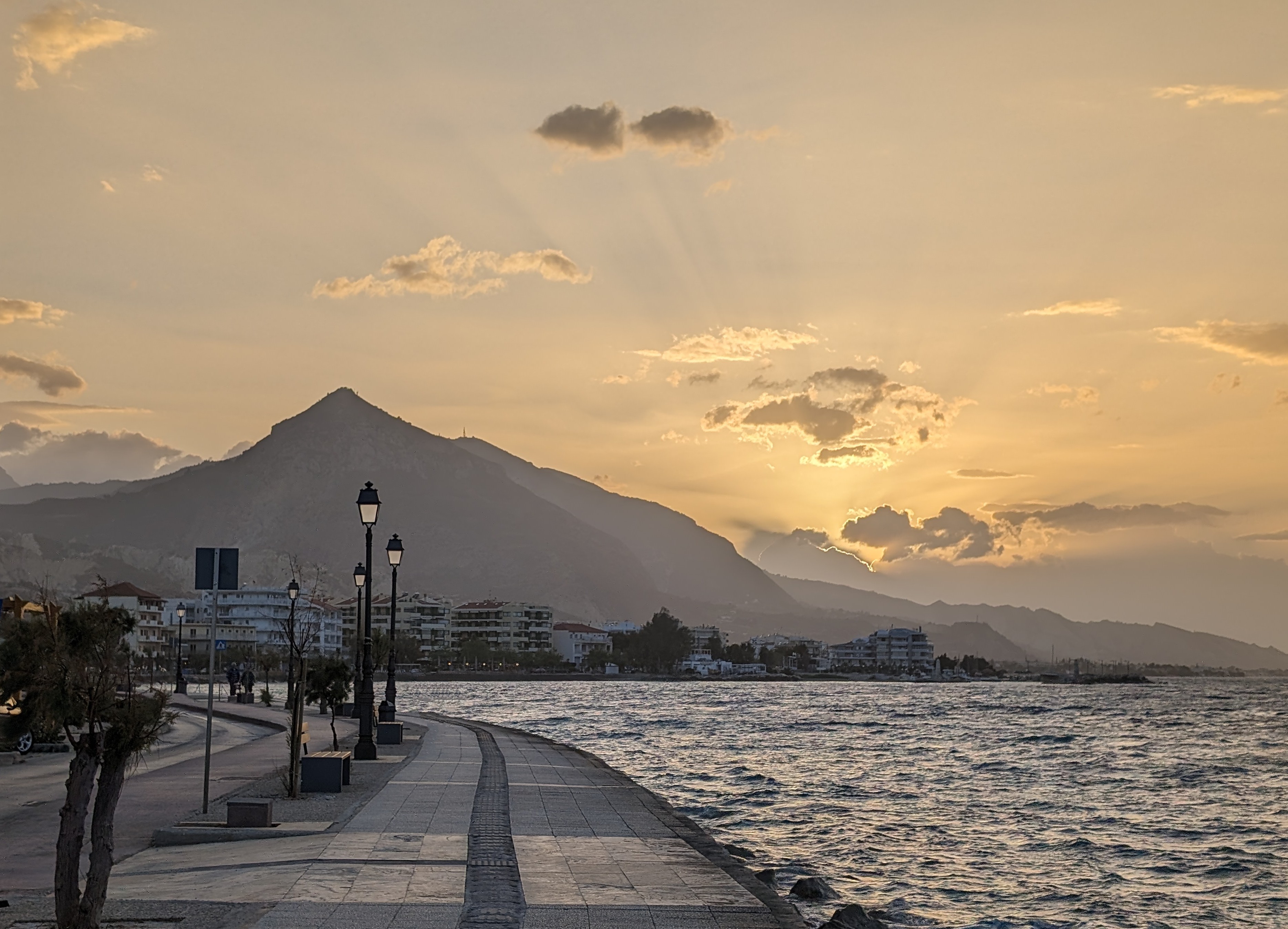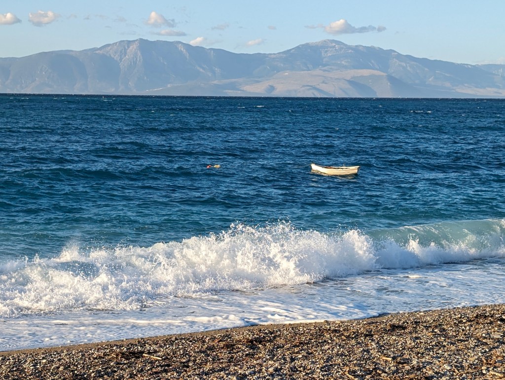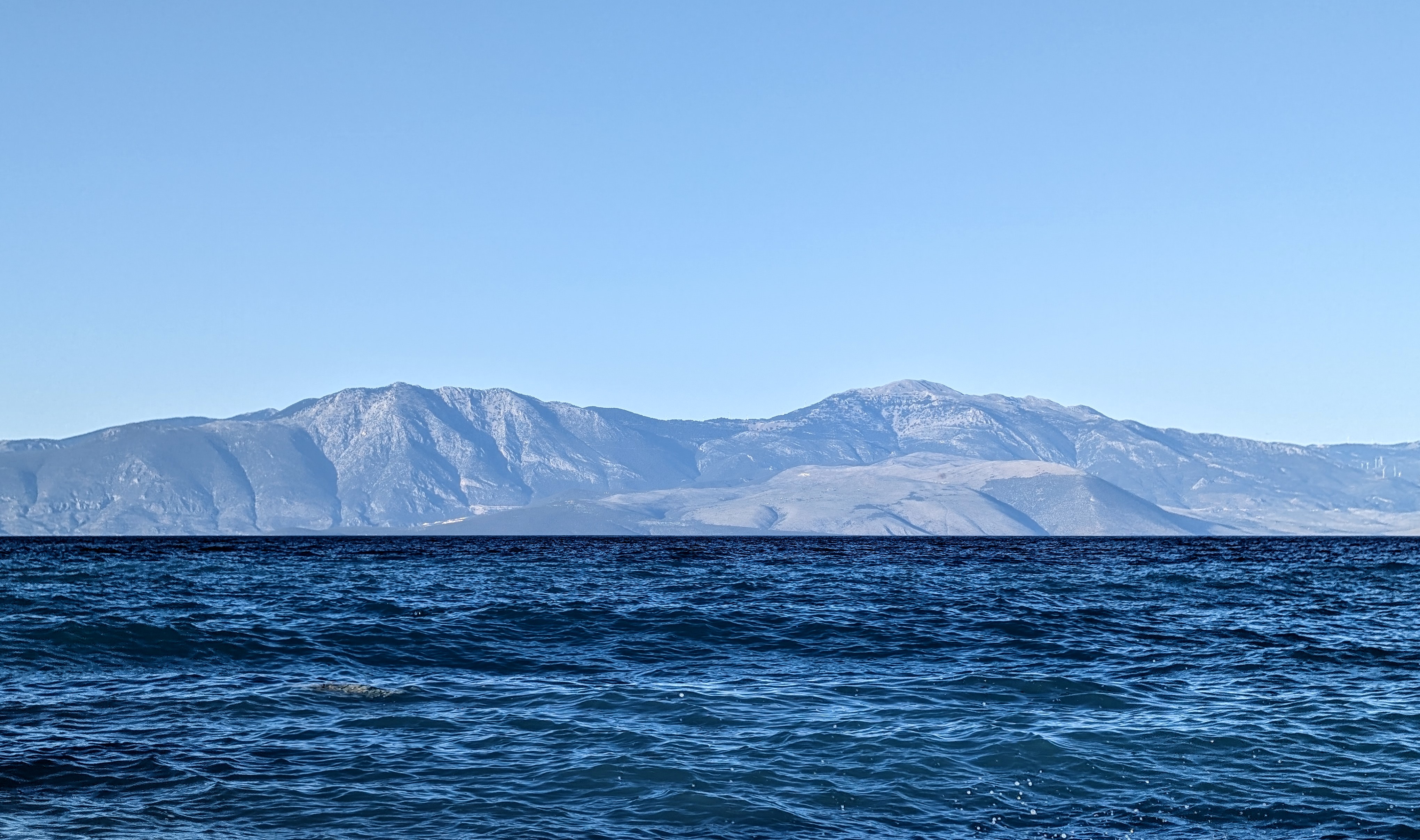 And finally, my favorite landscape: the beach, the sea, the mountains, and the sky from Sykia.
