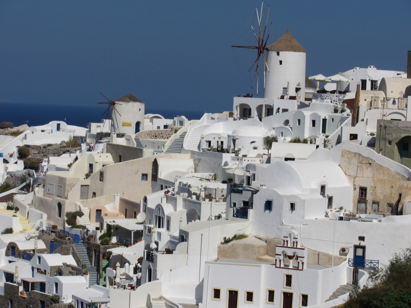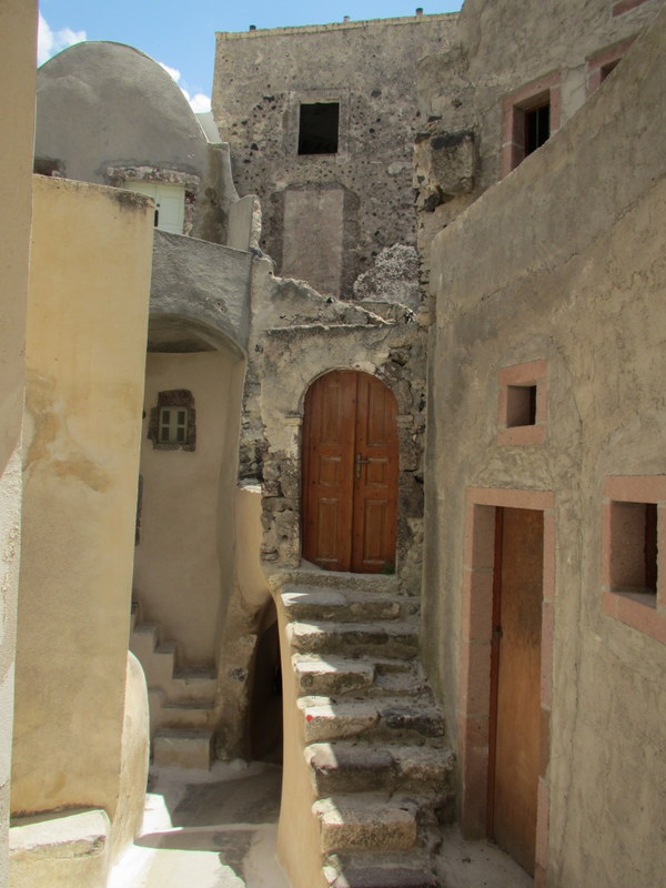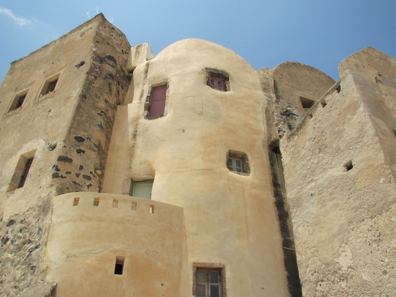There were 5 “castles” built on Santorini at various times in the last 800 years. One was at the site of the cathedral that slipped into the sea in Oia, and another was in the central village of Emborio. We visited the one in Emborio and, at the opposite end of the spectrum from Oia, almost had the place to ourselves.