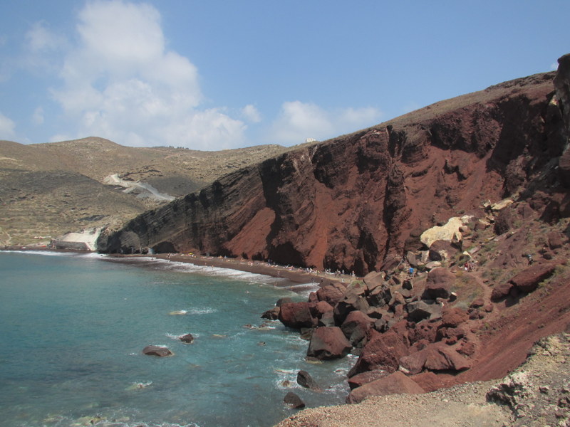 The Red Beach, near Akrotiri. Red sand/pebbles washed down from the cliffs make it a unique, and popular, place.