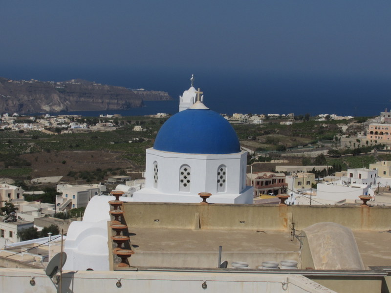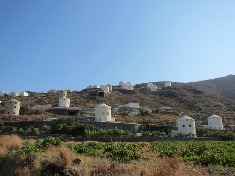 By last summer, however, we had spent 6 years exploring the embarrassment of riches that is the Greek wine world and couldn’t help but notice that several of our favorite wineries were located on Santorini. Our desire to taste the full expressive range of these wineries, and experience those unique instances of liquid glory in their native terroir led us to wonder if it would be worth a trip back. We concluded that we might be able to do it in good conscience if we found a hotel off the caldera and spent our time away from the rim. Susan found us a place that was not only run by Greeks but that catered almost exclusively to Greek tourists, and we had a wonderful time visiting wineries and seeing the rest of the island. Here, then, are some photos of the island’s interior villages. (I plan to post a piece about the wineries as part of this series.)