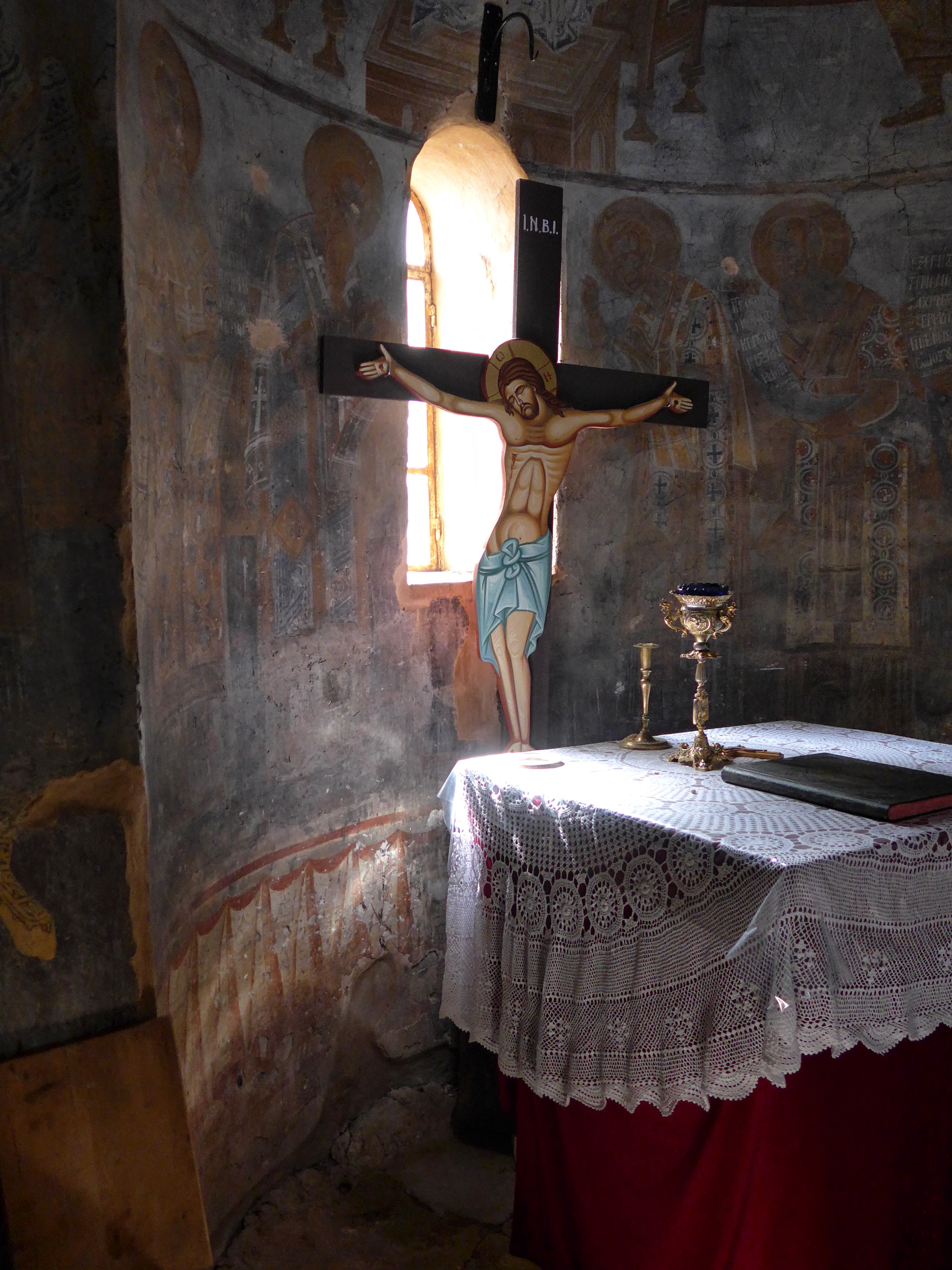 Sue’s cousin took us to an abandoned monastery, high up the mountain on a forestry road (I’d estimate the altitude at about 700 meters). The monastery’s church, dedicated to Mary “Queen of All” (Pantanasa), dates to the 15th century.