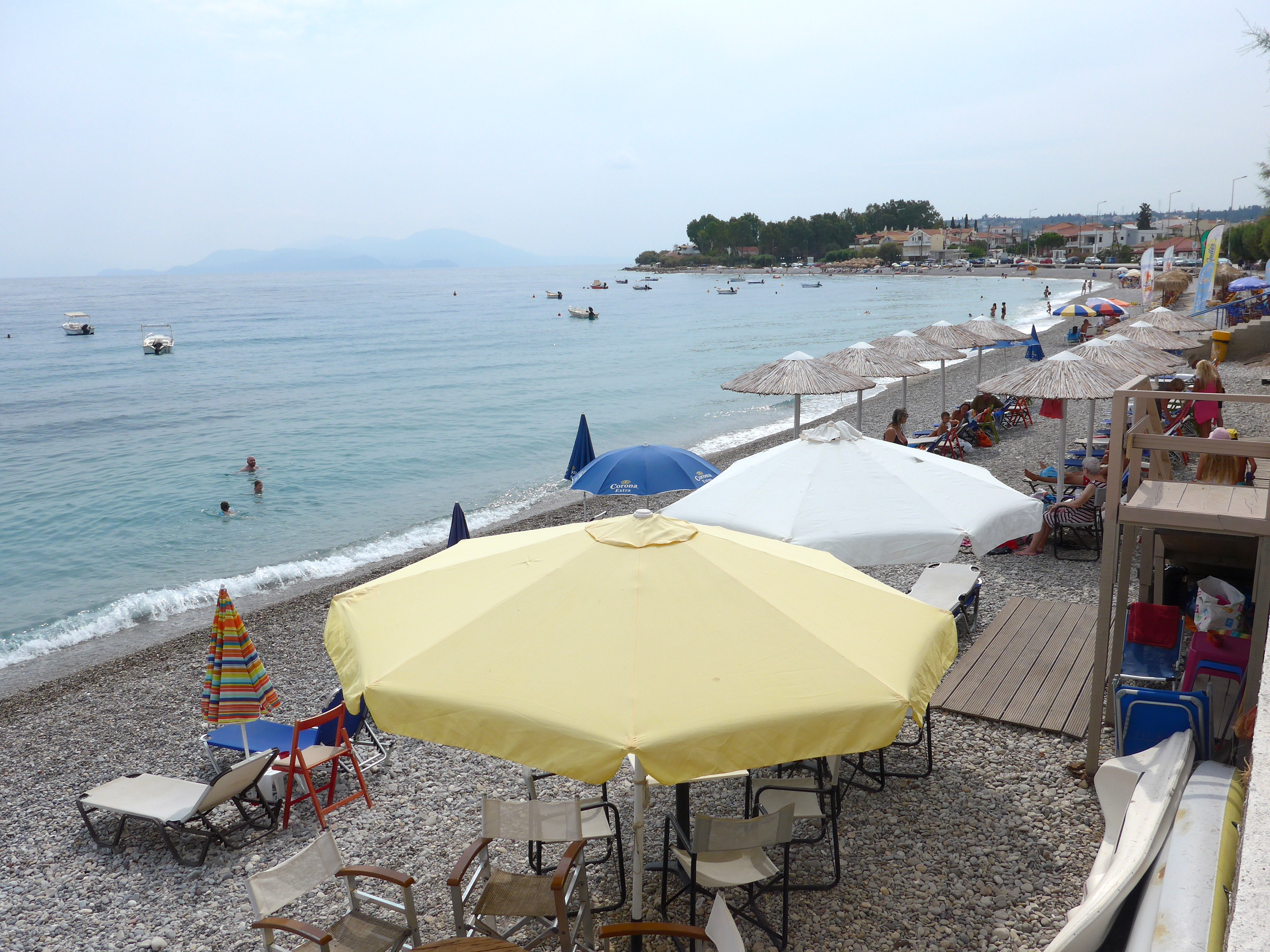 When we bought here, we bought in a pretty little village stretched out along a gorgeous body of water. Population: 231. A park, a church, a few tavernas, and that’s all. As absurd as it sounds sitting here now, it never occurred to me that this place would be Ocean City for hoards of Athenians, that its population would swell ten-fold (at least), that parking would be impossible, that the idiot with the loud car radio and bad taste would follow me here, that the tavernas would be full to — and beyond — capacity every night, that sentient human beings would sling themselves out under umbrellas on the beach all day every day, that crossing the beach road could ever approximate running across the Capital Beltway, that the park would be full of people from other villages every night until very late at night, and that people would navigate heavy traffic for 90 minutes to get here. And yet it’s happened again this year, just as it has in each of our previous years.