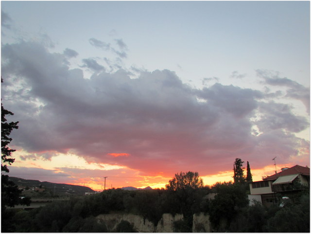 When Sue and her sister were galavanting around Greece a few weeks ago, I took a couple of walks around the village with my camera. Nearing sunset, the light is usually great on the mountains but on at least one of these days, we had a heavy load of atmospheric dust, which produced a milky sky. These are the pick of the litter.